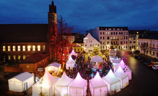 Der Weihnachtsmarkt am Roland lädt die Besucher vor stimmungsvoller Kulisse des Altstädtischen Rathauses mit großem Weihnachtsbaum, Weihnachtspyramide und abendlichem Lichterzauber zum Entdecken ...