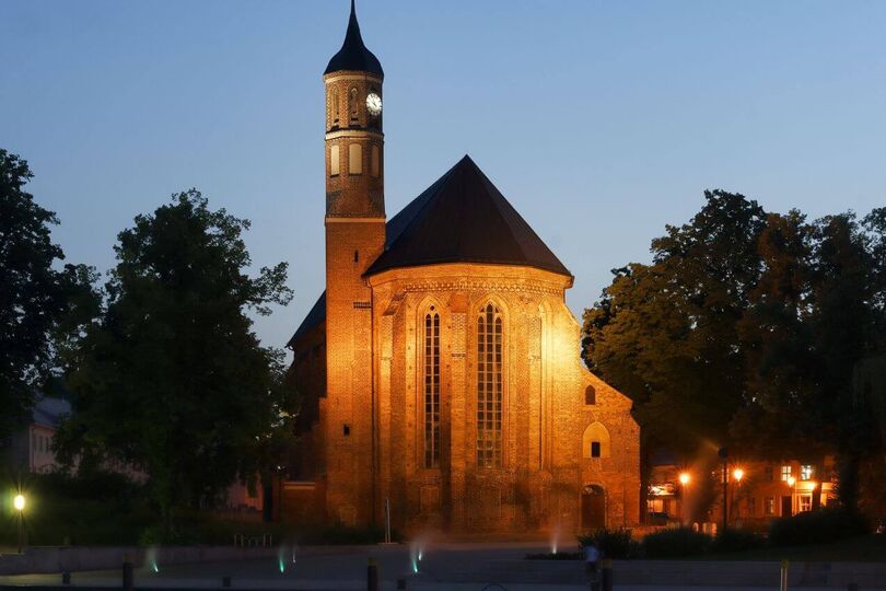 Nach 1237 ließen sich die Franziskaner am Rande der Altstadt nieder. Sie errichteten um 1250-70 eine langgestreckte, flachgedeckte Saalkirche aus Backstein mit schlanken Fensterschlitzen, die in beiden Langhausmauern erhalten ist. Um 1310-30 wurden die Schlitze mit Strebepfeilern zugesetzt und die Mauern auf fast doppelte Höhe gebracht. Die Rosette über dem Nordportal, die Fenstermaßwerke und der Weinlaubfries gehören zu den schönsten ihrer Art in der Backsteingotik. Der 1411-20 erbaute Laternenchor folgt dem Vorbild der Berliner Klosterkirche. Unterfenster erlaubten allseitigen Einblick. Im 14./15. Jh. wurden Sakristei, Kapellen und Bibliothek im Norden angefügt, im Süden 146069 der Glockenturm. An die Kirche grenzte südlich eine zweihöfige Klosteranlage, die zugleich die südliche Ecke der Stadtbefestigung bildete. Sie wurde 1865 abgebrochen. Auf Morast gegründet, verlor die Kirche früh ihre Gewölbe. Restauriert als Kirche der Réfugiés 1787 und 1850, wurde bei einem Bombentreffer 1945 die Westwand zerstört. Dach und Gewölbe stürzten 1986 ein. 1992 notgesichert, folgte 2007/08 die Stabilisierung der Ruine.