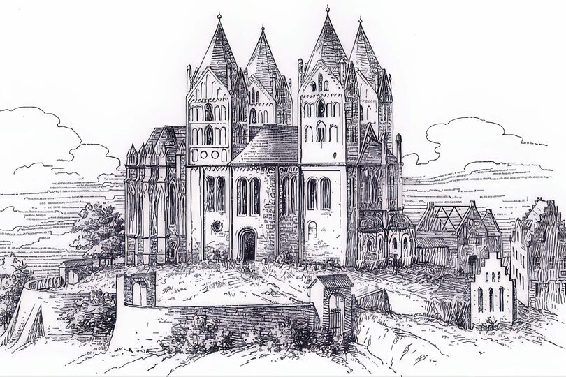 Ein spätslawisches Triglaw-Heiligtum auf der Kuppe des Marienberges (Harlunger Berges) wurde vor 1166 durch eine erste Marienkirche ersetzt, die sich zum Ziel einer regen Wallfahrt entwickelte. Etwa ab 1220-40 entstand ein aufwändiger, weithin sichtbarer Neubau, ein Hauptwerk der Spätromanik in der Mark. Der aus Backstein errichtete Zentralbau über kreuzförmigem Grundriss mit Apsiden an den Kreuzenden und vier Türmen in den Kreuzwinkeln war außen mit Lisenen, Rundvorlagen und Rundbogenfriesen gegliedert. Der in allen Teilen gewölbte Innenraum besaß umlaufende Emporen. Eine später angebaute westliche Eingangshalle war mit seitlichen Apsiden und mächtigen Strebepfeilern ausgestattet. Sie barg eine dem hl. Leonhard geweihte Krypta. Die Kirche auf dem Marienberg wurde 1435 mit einem Prämonstratenserstift verbunden, die Leonhardskapelle 1443 dem Schwanenorden gewidmet. Die seit der Reformation verfallende Kirche wurde auf königlichen Befehl, Protesten von Domkapitel und Magistrat zum Trotz, 1722 abgebrochen. Ihre Fundamente fielen 1970 größtenteils dem Neubau eines Wasserspeichers zum Opfer.