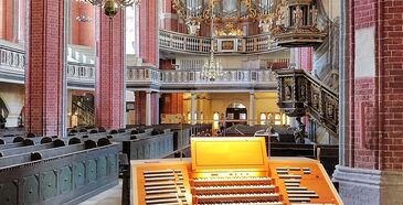 Das reich verzierte Orgelgehäuse der Wagner-Orgel wurde von Johann Georg Glume entworfen. 1936 wurde das Instrument von der Orgelbaufirma Schuke (Potsdam) umgebaut und 1993 restauriert. Das Kegelladen-Instrument hat 48 Register auf drei Manualwerken und Pedal. Die Spiel- und Registertrakturen sind elektropneumatisch.