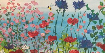 Lust auf Frühling? In diesem Kurs wird eine bunte Blumenwiese auf die Leinwand gezaubert. Gearbeitet wird mit Acrylfarbe und Strukturpaste.