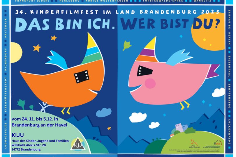 Die 34. Auflage des Kinderfilmfestes im Land Brandenburg findet vom 24. November bis 5. Dezember 2025 unter dem Motto „Das bin ich. Wer bist Du?“ im Haus der Kinder, Jugend und Familien „KiJu“ statt. Eröffnet wird das Fest am 24. November um 9.00 Uhr mit dem deutschen Spielfilm „Unheimlich perfekte Freunde“ sowie einer unterhaltsamen Nachbearbeitung. Das diesjährige zweiwöchige Kinderfilmfest rückt den Wert des gemeinsamen Filmerlebens ins Zentrum. Es macht erfahrbar, wie gewinnbringend es ist, Filme mit anderen zusammen zu sehen, sich darüber auszutauschen und dabei neue Sichtweisen kennenzulernen. Und selbstverständlich zieht sich das Motto als roter Faden durch die ausgewählten Produktionen des Programms. Insgesamt präsentiert das Haus der Kinder, Jugend und Familien sieben Spielfilme, einen Dokumentarfilm sowie ein Kurzfilmprogramm und Bilderbuchkino für die Jüngsten.