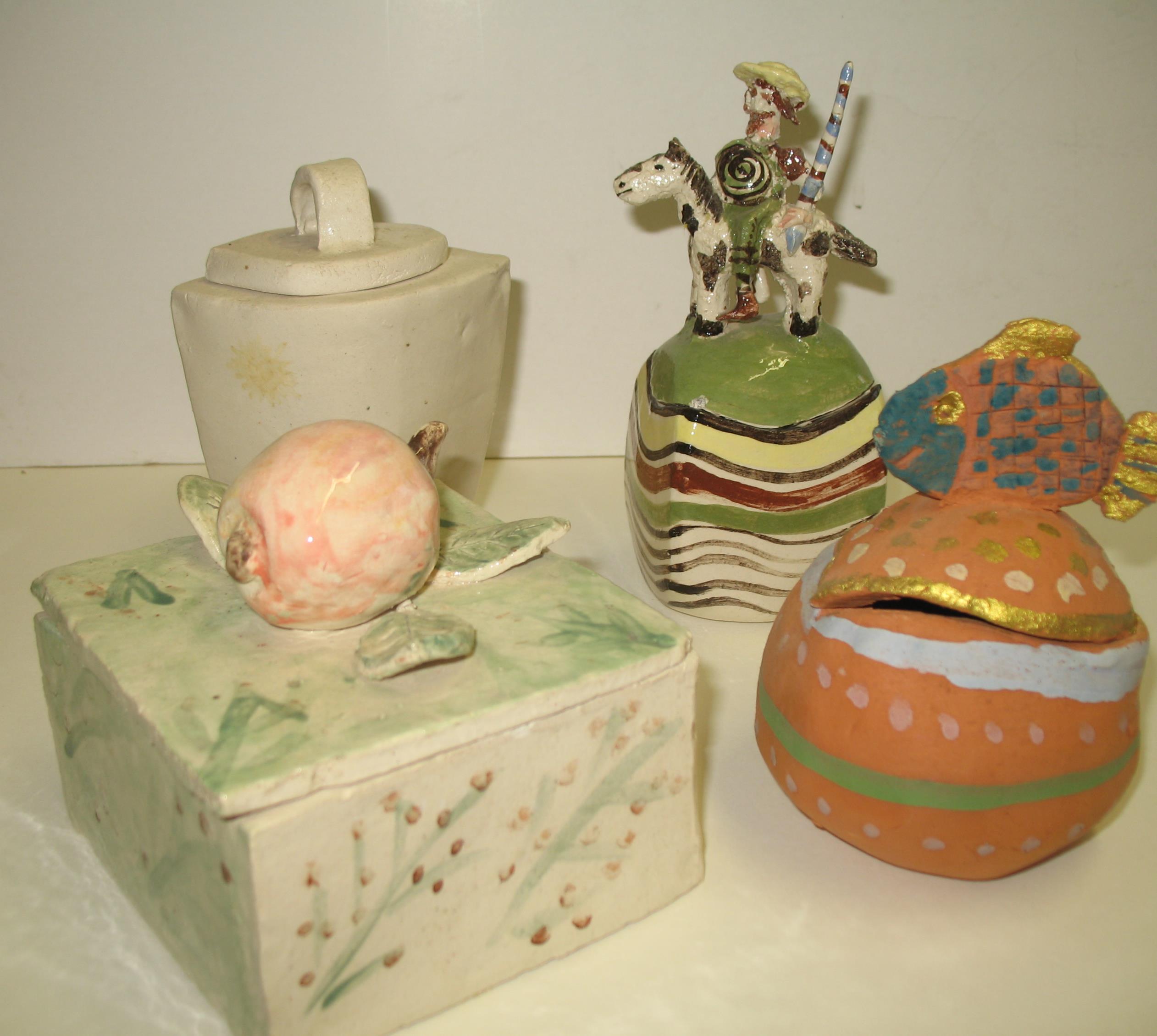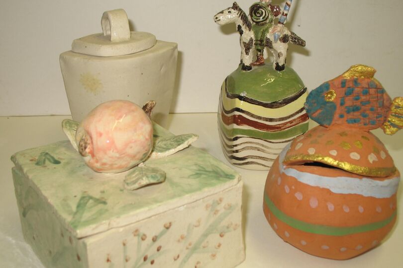 Vielleicht wolltest du schon immer eine eigene Schmuckdose haben? Oder eine solche verschenken? Wir wollen eine Dose aus Ton herstellen. Dazu machen wir uns erstmal in Zeichnungen ein Bild von unserem Gefäß. Dann setzen wir die Entwürfe in verschiedener Art und Weise um. Mit farbigen Engoben gestalten wir die Gefäße. Bitte kommt an zwei aufeinander folgenden Tagen, um genügend Zeit für eure Arbeit zu haben. Es wird mit weißem Ton gearbeitet.