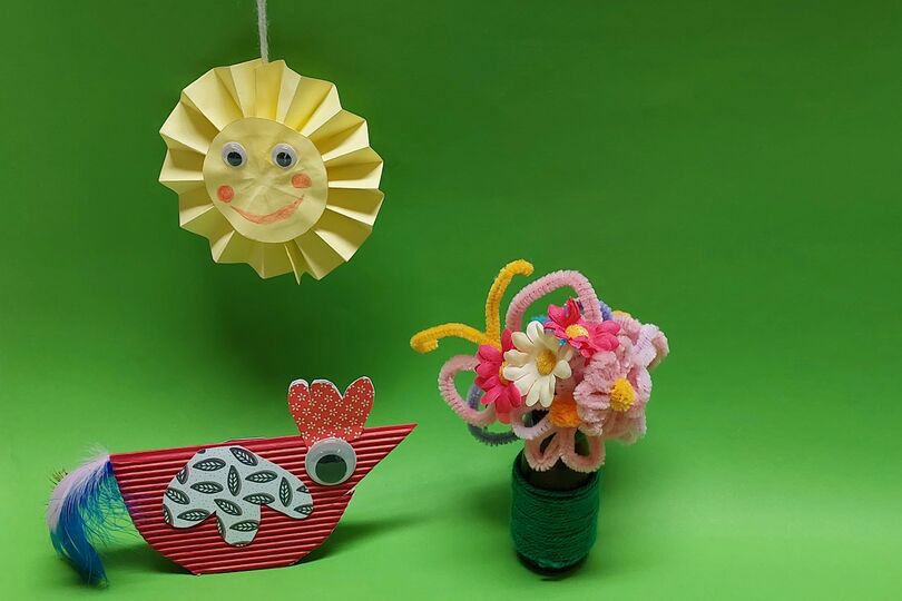 Wir freuen uns auf den Frühling und basteln mit euch süße Osterhäschen und gestalten bunte Vasen und Frühblüher.