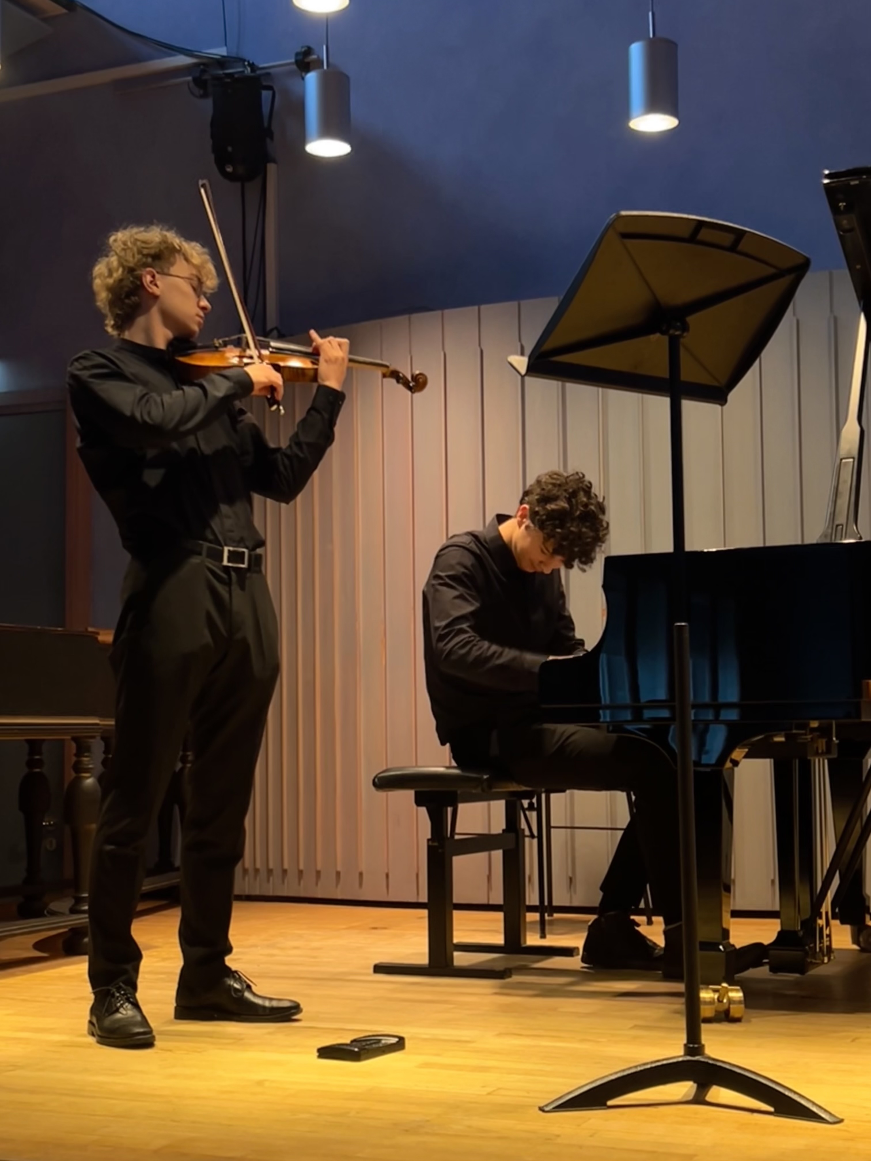 Luca und Frodewin lernten sich 2023 bei einem gemeinsamen Theoriekurs der Musikschule „Vicco von Bülow“ kennen. Eine gegenseitige Sympathie und ein ähnliches musikalisches Interesse, wie auch ähnliche interpretatorische Vorstellungen, ließen eine gute Freundschaft entstehen. Nun bereiten die beiden sich auf den internationalen Interpretationswettbewerb für verfemte Musik in Rostock vor. Im heutigen Konzertprogramm geben sie einen Einblick in ihr Wettbewerbsprogramm und haben darüber hinaus ein paar solistische Beiträge mitgebracht. Frodewin Hoyer – Violine Luca-Stefan Avram – Klavier