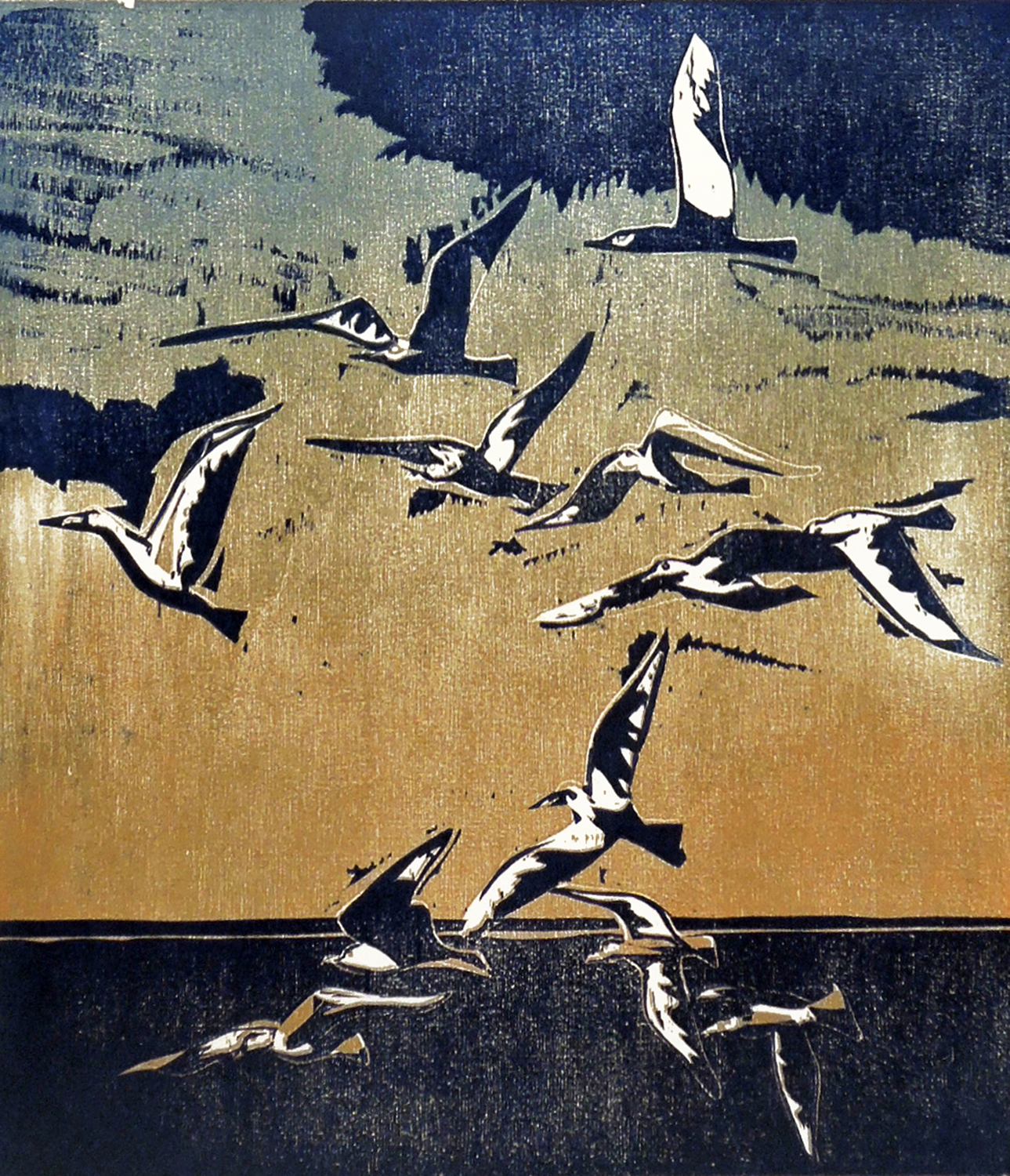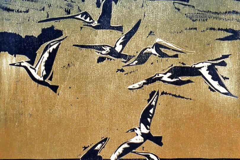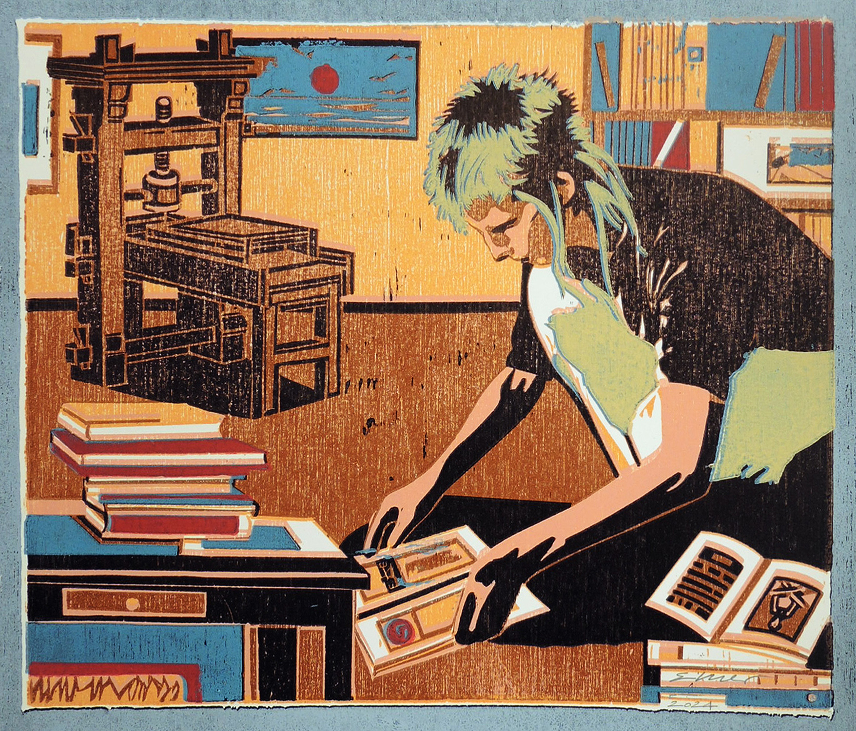 „Verlorene Form“ - vielleicht rätseln Sie auch, was sich hinter dieser kryptischen Formulierung verbirgt, die eine besondere Art des grafischen Gestaltens beschreibt. Aufschluss darüber, warum diese Technik als wohl anspruchsvollste Variante des Holz- oder Linolschnitts gilt, kann ein Besuch der „Sonnensegel“- Ausstellung geben. Der in Leipzig geborene Grafiker und Maler Frank Eißner ist ein Meister des mehrfarbigen Holzschnittes. Auf ein- und demselben Druckstock wird nach jedem Druck, also nach jeder einzelnen Farbe, weiter geschnitten, bis alle notwendigen Farben gedruckt und die Blätter fertig sind. Dabei verändert sich der Druckstock derart, dass er am Ende zerstört, verloren ist. Von Anfang an muss der Künstler also eine klare Vorstellung vom Endprodukt haben. Fehlerkorrekturen sind nicht möglich. Zum Glück merkt man den Holzschnitten von Frank Eißner die Kompliziertheit des Entstehungsprozesses nicht an. Vielmehr beeindruckt der fast malerische Eindruck, den der Künstler durch das Übereinanderdrucken von bis zu sieben Farben erzielt. Ebenso bemerkenswert ist das breite Themenspektrum, das die grafischen Blätter abdecken. Neben Landschafts- und Naturdarstellungen dominiert das Figürliche. Gestalten, die wir aus Sagen bzw. Mythen, aus einem historischen Kontext kennen oder die einfach als Verbeugung des Künstlers vor wichtigen Musikerinnen und Musikern der Rock/Pop-Geschichte gemeint sind.