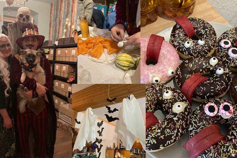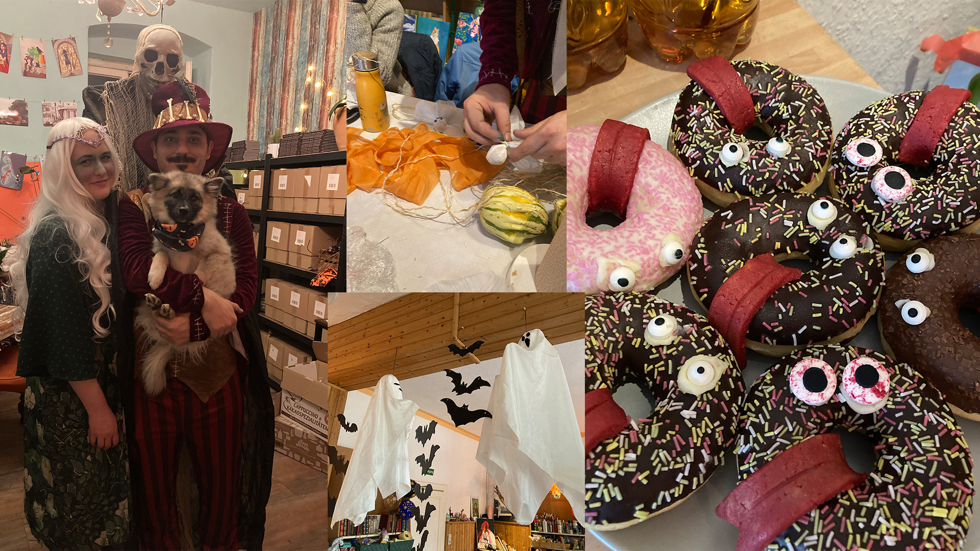 Unser Atelier wird gruselig geschmückt. Es gibt Süßes genauso wie Saures.