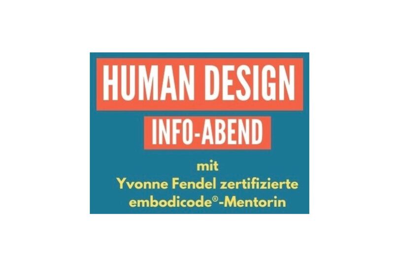 Entdecke Deinen kosmischen Fingerabdruck, um Dich und deine Mitmenschen besser zu verstehen. HUMAN DESIGN INFO ABEND mit Yvonne Fendel zertifizierte embodicode®-Mentorin Was treibt dich an / Was gibt dir Kraft / Was raubt dir Energie / Wie tickt dein Kind Wie kommst du in deine Mitte / Wo sollte dein Fokus liegen Bring deine genaue GeburtUHRZEIT + ORT mit, dann erstellen wir Deine Körpergrafik