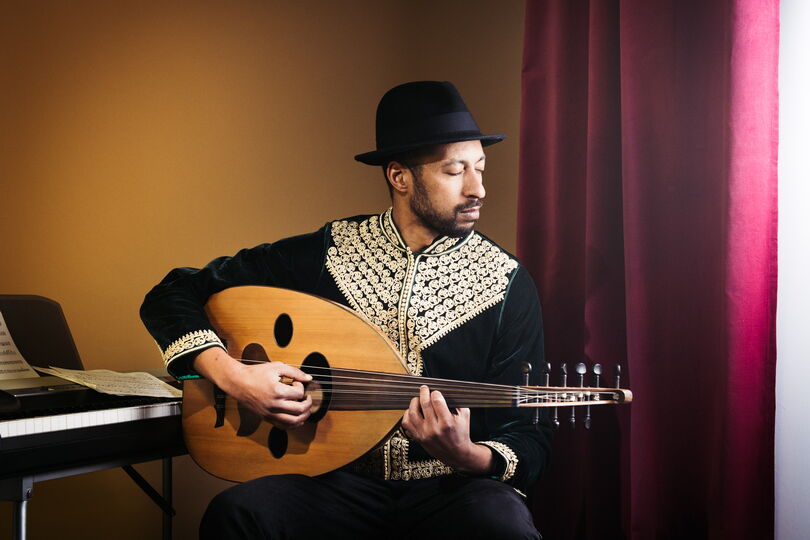 Geboren in Casablanca, Marokko, begann Alaa Zouiten seine musikalische Laufbahn als Meister des Oud. Die Oud – eine traditionelle arabische Laute – verzaubert mit warmen, tiefgründigen Klängen, die Geschichten und Gefühle ohne Worte erzählen. Verwurzelt in klassischer arabischer und traditioneller marokkanischer Musik, lebt er heute in Berlin und arbeitet mit Musiker*innen aus aller Welt.