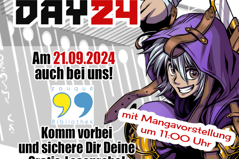 Zum zweiten Mal laden wir zum Manga Day ein. Der Manga Day ist ein bundesweites Event, an dem über 1300 Buchhandlungen und Bibliotheken im deutschsprachigen Raum teilnehmen. Du kannst dir Gratis-Hefte sichern, sowohl in der Kinder- als auch in der Jugendbibliothek. Dank der Zusammenarbeit mit namhaften Verlagen erwartet dich ein Mix aus etablierten Serien und aktuellen Neuheiten, die quer durch die Genres von Fantasy über Action bis hin zu Romance und Mystery reichen. Und mehr noch: Das Bibliotheksteam hat sich wieder kniffelige Fragen für ein Quiz einfallen lassen und setzt die Buttonmaschine in Gang. Du kannst dir Manga-Button gestalten und mit nach Hause nehmen. Um 11:00 Uhr findet die Mangavorstellung in der Kinderbibliothek statt. Du hast eine Lieblings-Charaktere und schlüpfst gerne in ihre Rolle? Alle sind herzlich eingeladen, ihren favorisierten Style zu präsentieren. Einige Cosplayer haben sich schon angekündigt.