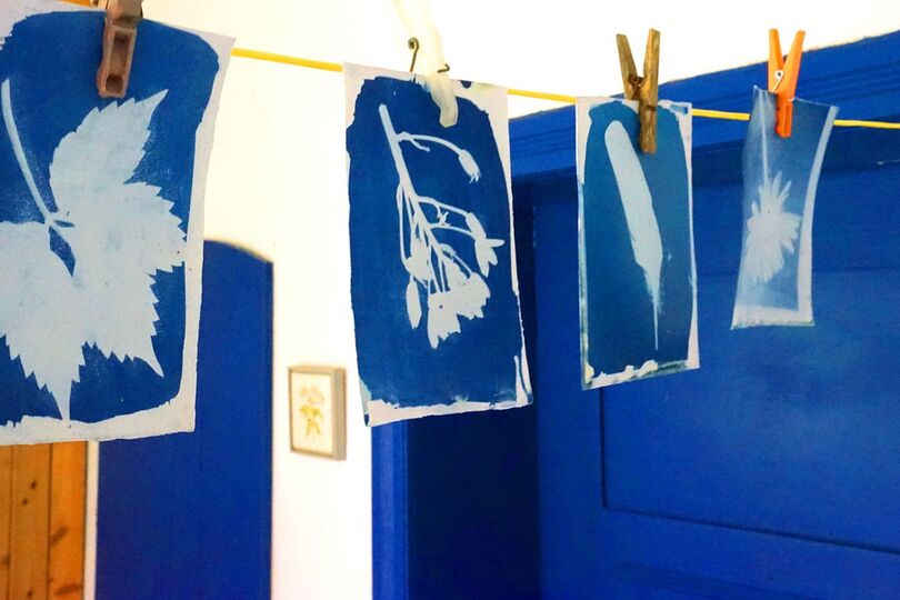 Ausgehend von Naturmaterialien, welche wir im großen grünen Garten des Kunstguts Krahne sammeln, wird jeder Teilnehmer eigene Drucke im einfachen, aber beeindruckenden Blaudruck, der Cyanotypie, herstellen.