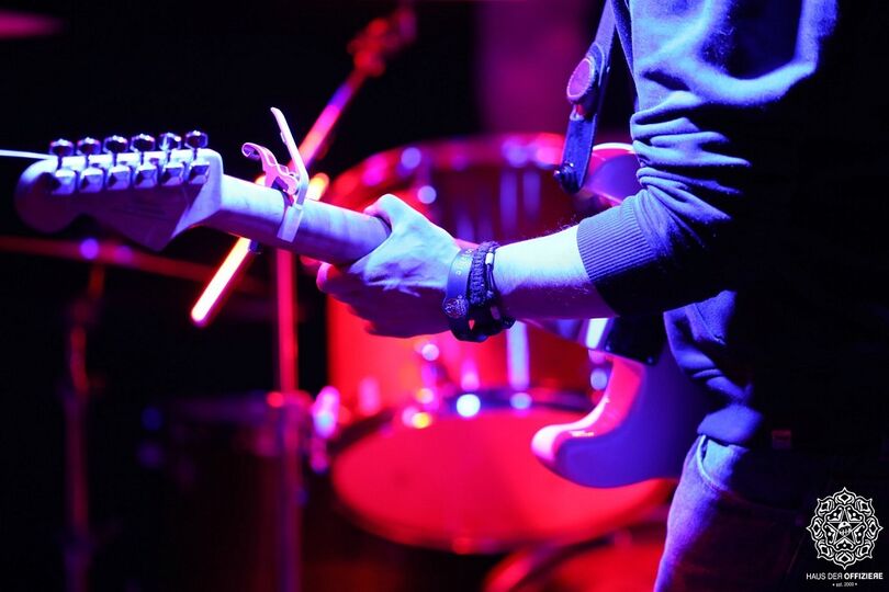 Vor Ort findet ihr ein Schlagzeug, zwei E-Gitarren, einen Bass, Amps, Mikrofone und haufenweise tolle Leute.
