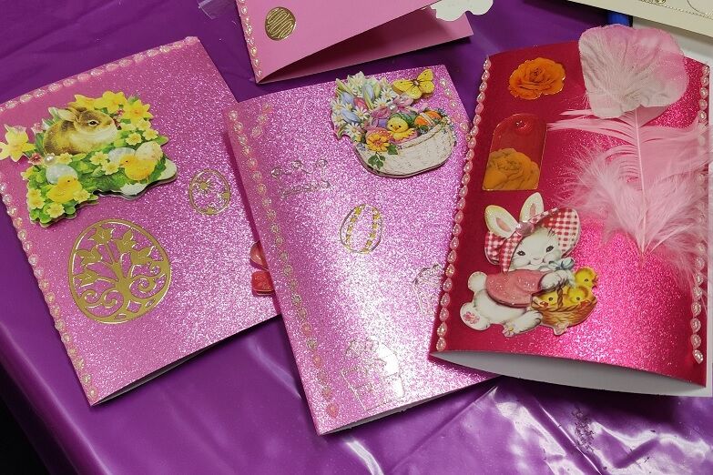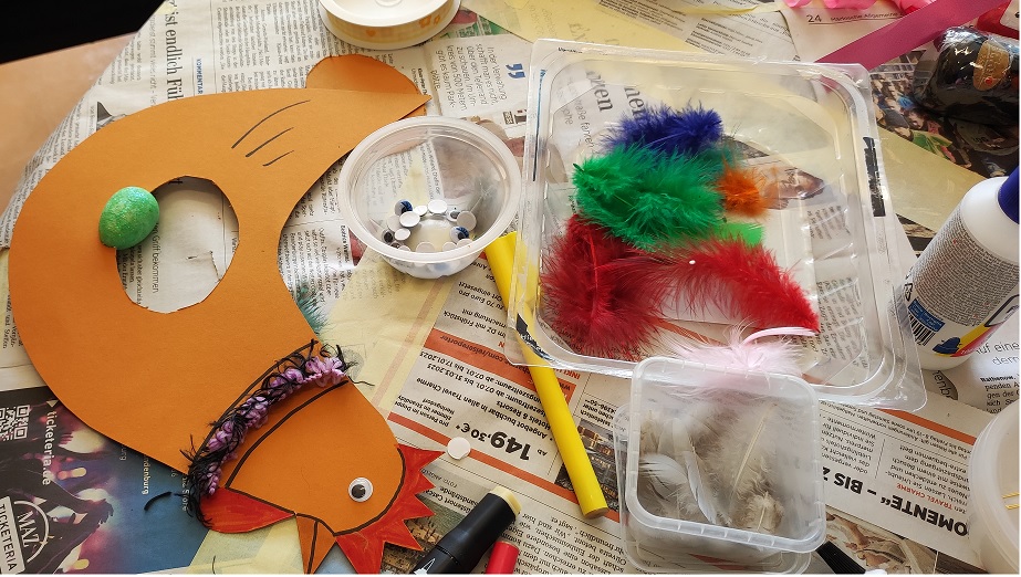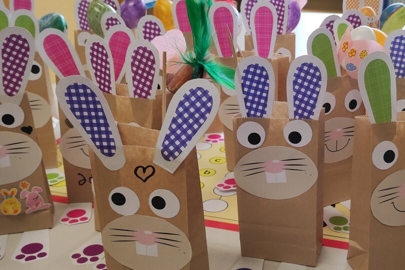 Wir verzieren Ostereier, gestalten Frühblüher und Karten und basteln kleine Osterhasen.