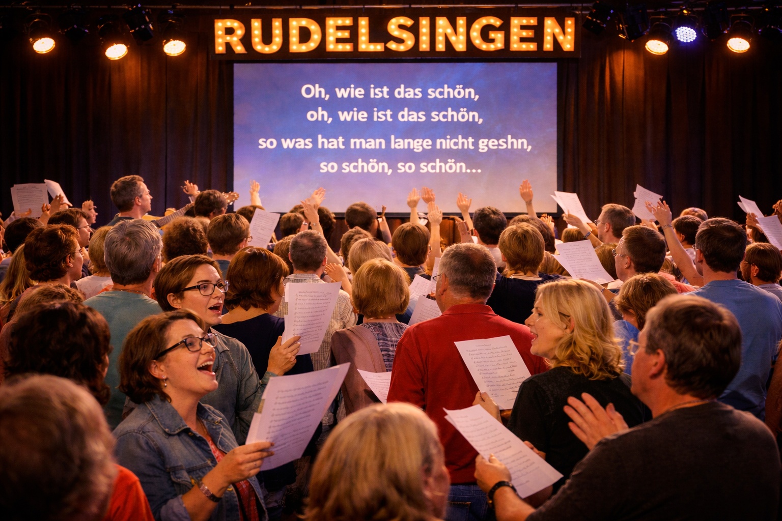 Beim Rudelsingen geht es nicht um Perfektion, sondern um das Erlebnis: bekannte Lieder aus Pop, Rock, Schlager und Evergreens, live begleitet, mit gut lesbaren Texten für alle. Ganz gleich, ob du laut mitsingst oder dich einfach von der Stimmung tragen lässt – jede Stimme zählt.