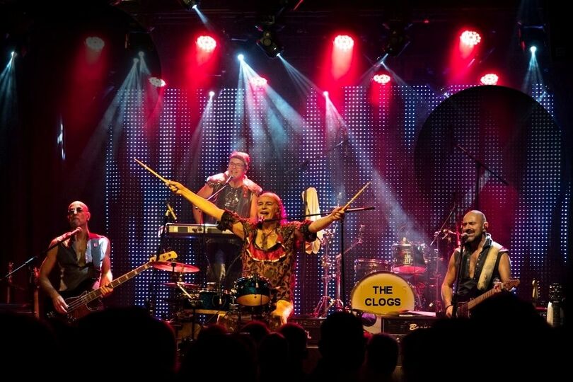 Die Glamour-Rockband aus der Region tourt seit Jahren erfolgreich durch Deutschland und Europa. Mit ihrem außergewöhnlichen Rock`n´Roll-Sound und ihren Retro-Phantasiekostümen verstehen es THE CLOGS zuverlässig, bei jung und alt Partyattacken zu erzeugen. Dabei präsentieren sie eine grandiose Show mit den größten Hits von Status Quo, Kiss, ABBA, Queen, Smokie, den Rolling Stones oder Village People. Das alles gewohnt eigenwillig präsentiert: „Retro-Phantasie-Look-Rock“ vom Feinsten!